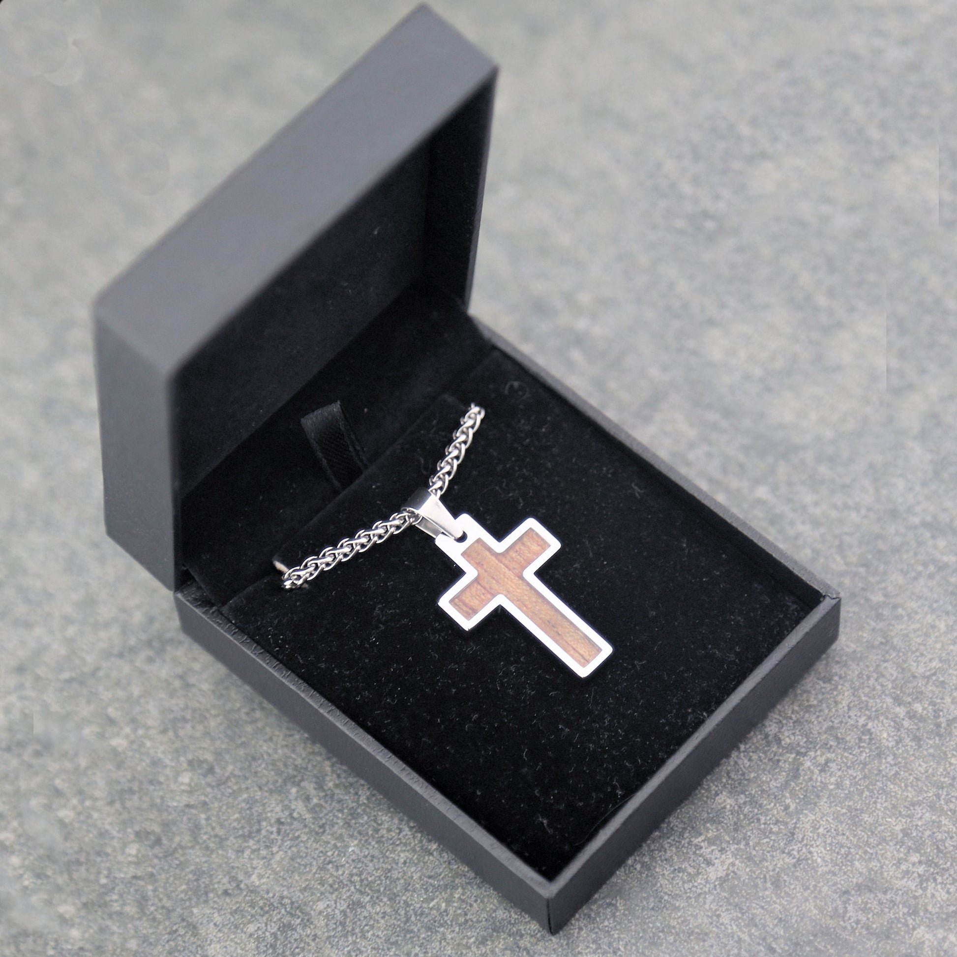 This refined Tungsten Carbide cross is available in gold plated, black plated, or polished finishes, each enhanced with a selection of distinctive inlays. Paired with a durable stainless steel Cuban necklace, this piece combines modern elegance with lasting strength, making it a sophisticated accessory suitable for any occasion.
